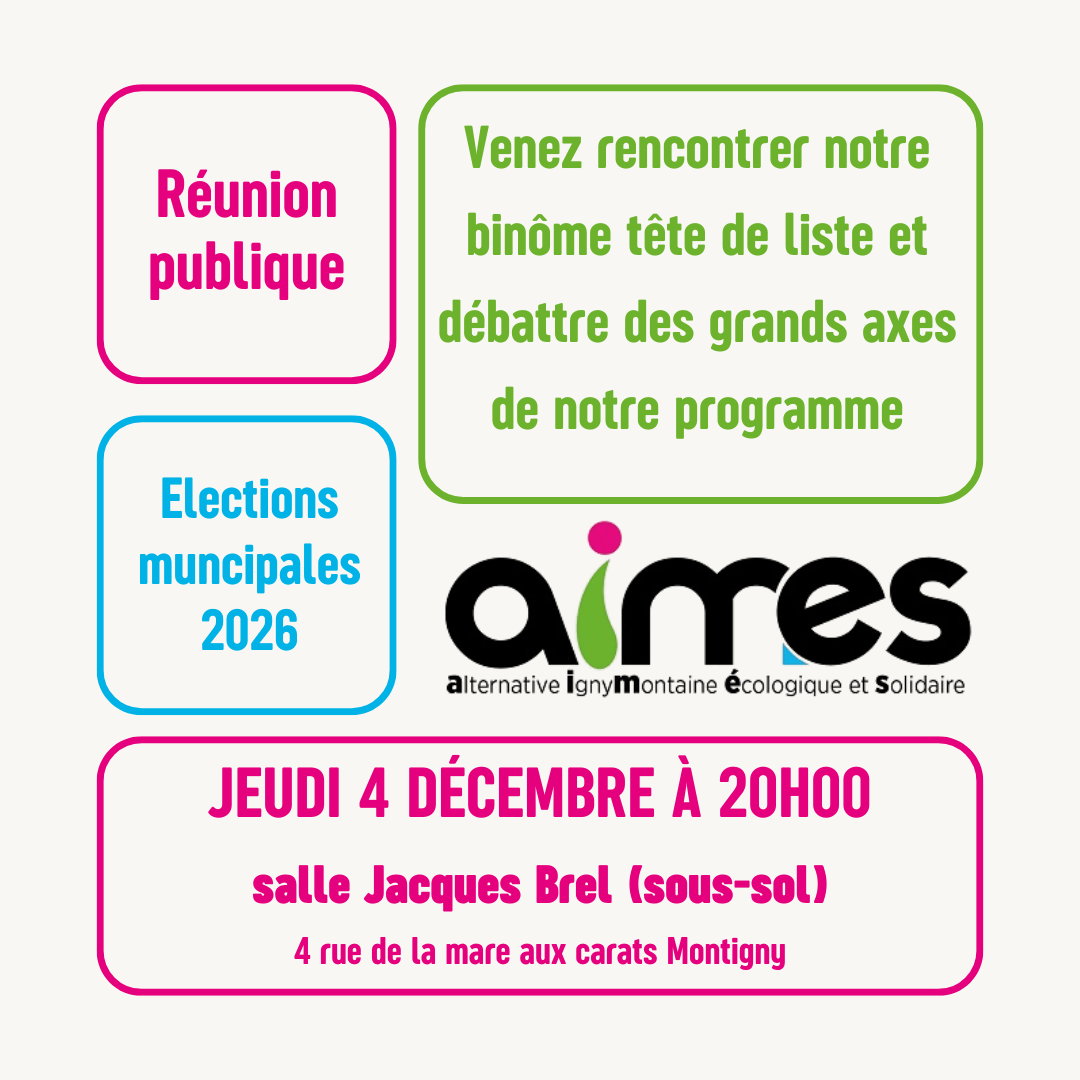 Faites connaissance avec notre binôme tête de liste pour les élections municipales : Claire Lavenant et Guillaume Beuriot et venez débattre des grandes lignes directrices du programme de AIMES.